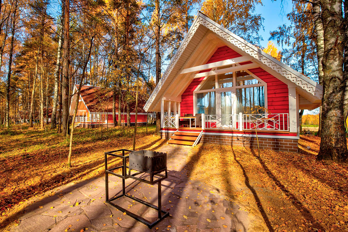 В-третьих, эко-отель не имеет стандартных многоэтажных корпусов, к которым мы привыкли. Здесь каждому гостю предоставляется отдельных домик, который выполнен из дерева и, что очень впечатлило меня, имеет огромные окна. Кажется, что, даже сидя в помещении, ты все равно находишься в некоем единении с природой. Мебель, кстати, также из дерева – ясеня. Экологическая составляющая даже в мелочах. Однако, наряду с аутентичными вещицами, используемыми в интерьере, в домике незаметно притаились и плита, и электрический чайник, и фен, и утюг. Если вы захотите приехать сюда зимой – к вашим услугам отопление, дровами печь топить не надо. Если же захочется приготовить своими руками что-нибудь на огне – рядом с каждым домиком мангал. Мне радостно, что здесь вполне грамотно сочетаются и легкость русского национального стиля, и комфорт.